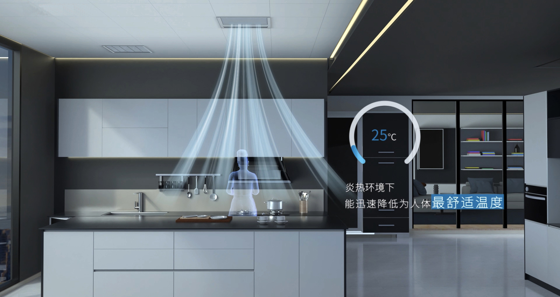 我們待在廚房的時間越來越長,對廚房環境的要求自然也越來越高。針對中國廚房油煙、異味殘留、高溫等痛點,庫靈圖首創廚房新風系統。打造清新、舒適的廚房環境,讓我們更樂于在廚房逗留,享受品質廚房生活。